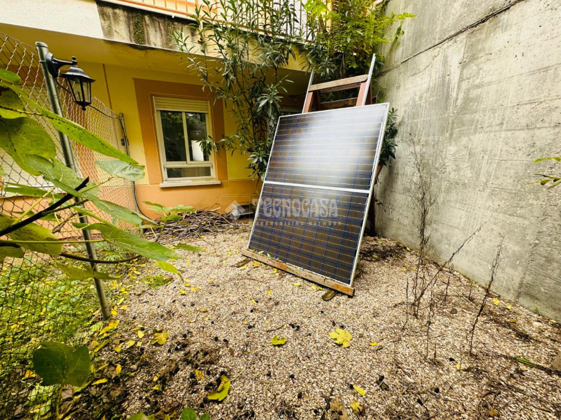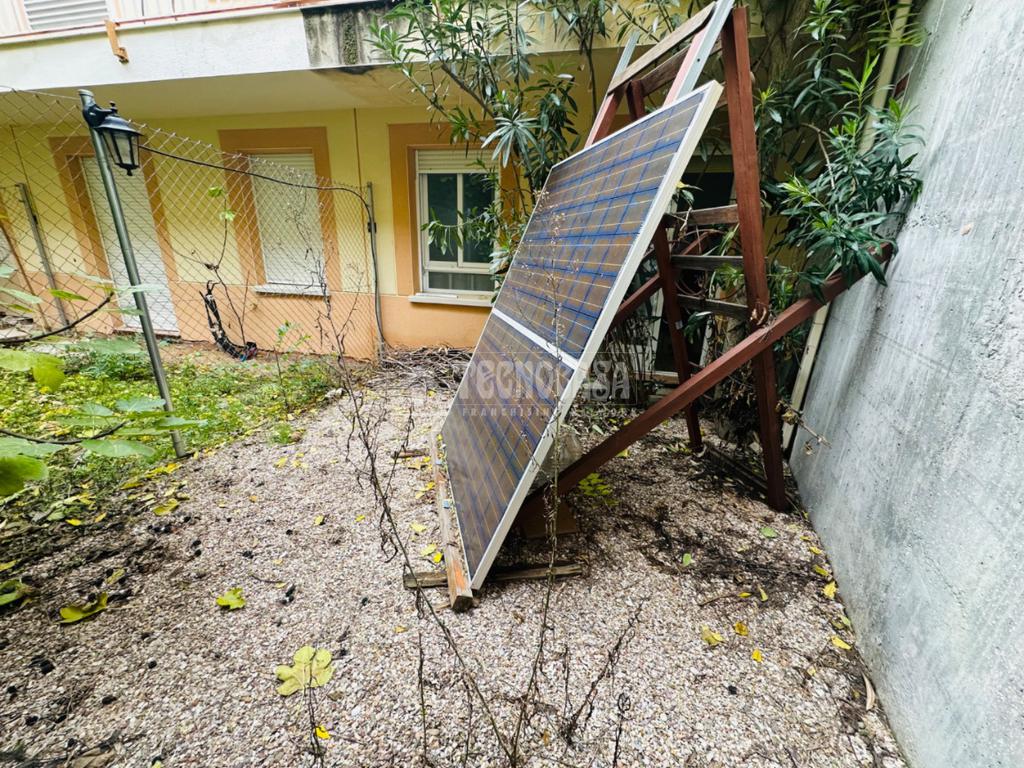 • Patio con instalación de placas solares .